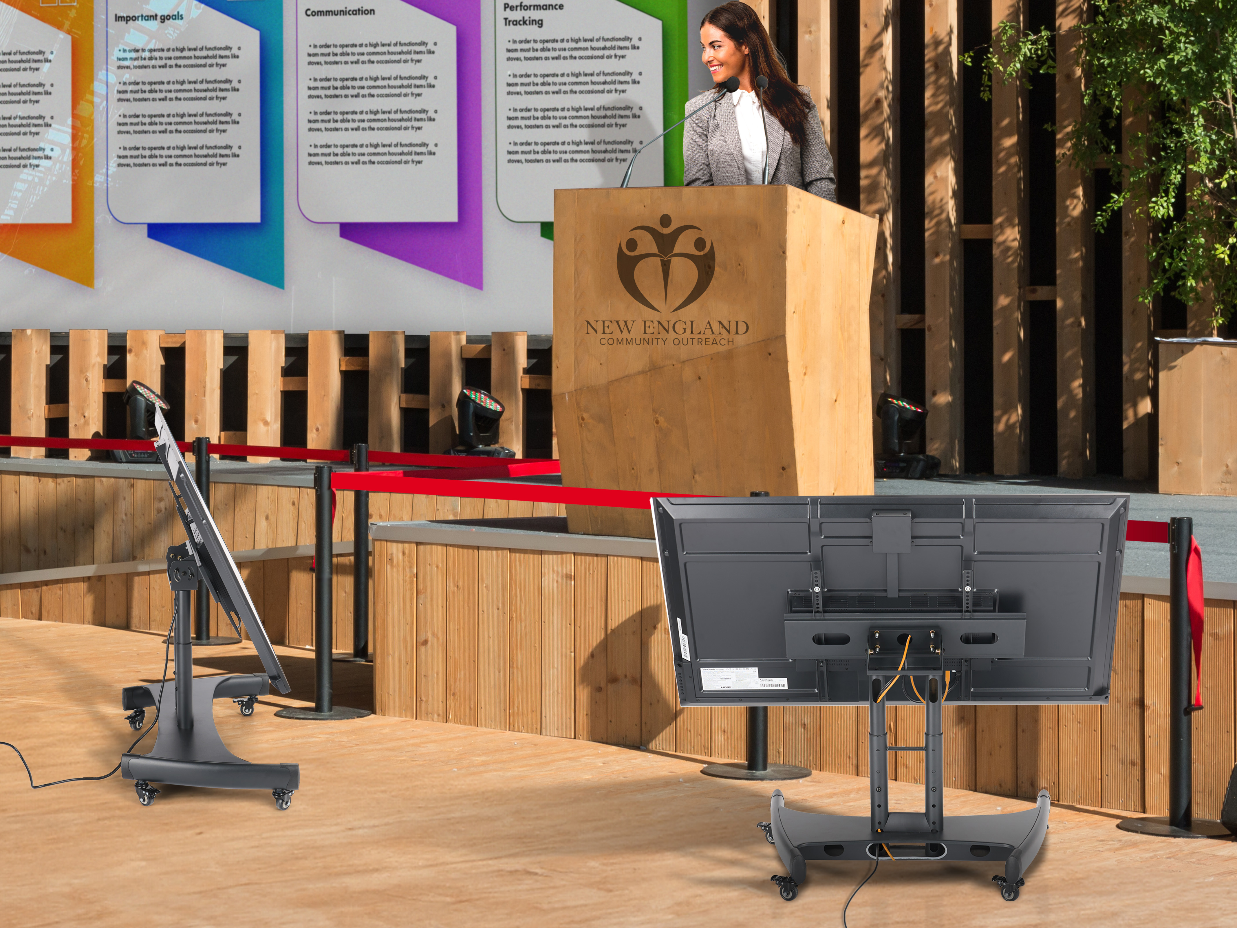 Confidence Monitor Stand with Adjustable Height and Integrated Cable Management