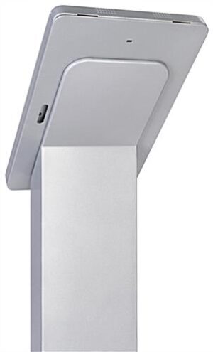 The silver Surface Pro floor stand enclosure offers viewing in portrait or landscape orientation along with cable management for a neat and professional appearance. Each aluminum digital display kiosk is keyed alike, making maintenance simple should you choose to have multiple units in your retail establishment, trade show or expo booth. Guests will be able to use the camera on your Microsoft tablet; however, all other buttons will have restricted access. The Surface Pro floor stand enclosure is a modern way to share information with your patrons, create a digital check-in station or to provide guests with an interactive ordering kiosk.
