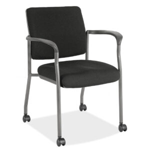 If you are looking for a reception chair that is comfortable, durable, and stylish, choose this guest chair from the Advanced Collection by OfficeSource. This guest chair is designed to fit the needs of a dynamic range of workplaces. No matter what type of office furniture you have, this guest chair will fit in perfectly. This guest chair boasts a simple yet elegant design, making it appealing to everyone. By placing this guest chair in your reception area, you can rest assured that your clients and customers will be impressed. The all black fabric upholstery of this guest chair gives it a bold appearance. This chair is also quite easy to maintain. The armrests on this chair are great for providing support to your elbows and hands. The titanium gray frame enhances the appearance and durability of this guest chair.