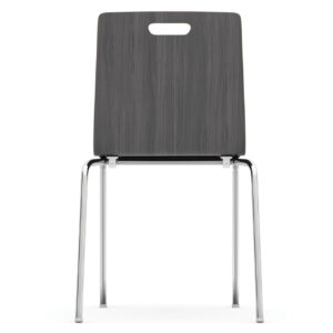 OfficeSource | Bleecker Street Collection | Wood Stack Chair, Hand Hole in Back with Chrome Base (Pack of 4)