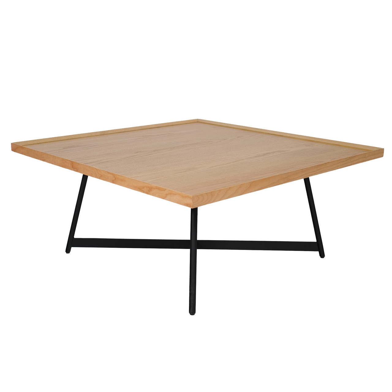 Description Industrial-inspired design defined by its angular lines and versatile finishes Black, powder-coated steel cross sled base Oak veneer 36″W square surface with a hard PU finish that is tested to exceed BIFMA weight load standards Solid Acacia wood raised tray edges to keep your personal items in place Your choice of two versatile finishes, Natural or Walnut