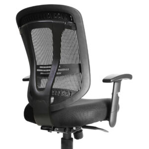 This Engage Collection task chair from OfficeSource comes upholstered in a springy mesh, which will ensure that the user can sit comfortably and work without getting fatigued. The passively designed lumbar curve support ascertains that the user remains relaxed throughout the day. The air mesh circulates air through the task chair, keeping the user ventilated. You can choose between two upholstery colors to suit the ambience of your office. The adjustable height, depth, and width make these contemporary chairs one of the best ergonomically designed office chairs available in the market today.