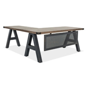 This industrial desk with metal corners will help modernize your office and working space. Coming in a distressed brown finish, with metal legs and corners, this desk offers both style and durability. Pair it with the industrial return to create an L-Shaped Workstation!