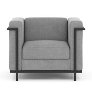 This uniquely designed club chair will set your lounge apart from all of the rest. Coming in light gray, this club chair will match any room, looking sophisticated and clean. What sets this club chair apart, is its unique black metal frame that outlines the base and arms of the chair. Offering both comfort and style, this club chair from the new Framed Collection is sure to be an eye-catching favorite.