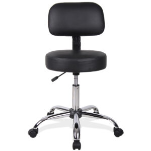 This exquisite medical stool is designed for those professionals spending long hours at work. Investing in this office seating solution will decrease your chance of having back pains from spending long hours at work. This medical stool from OfficeSource comes with a backrest for increased comfort, and the black vinyl upholstery and chrome frame combination makes this stool quite aesthetically pleasing. The chrome base of this medical stool seamlessly connects to the vinyl upholstery of the stool. The casters attached to the base of this office furniture promotes easier mobility at your work station.