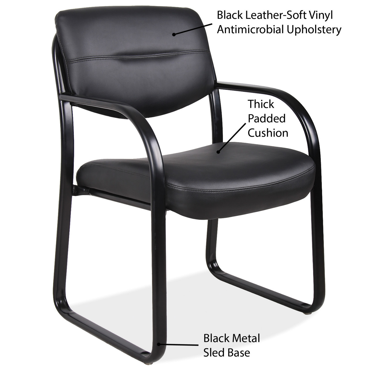 When choosing a chair for your office guests, it is important that the piece of office furniture that you choose is not only aesthetically pleasing, but also offers great comfort. This sled base guest chair from OfficeSource is the best example of this. This guest chair is simple and offers sheer comfort to the user. This sled base guest chair features an all black frame, which blends well with nearly any office furniture set. The seat and back are upholstered with soft vinyl, which makes this chair extremely comfortable to use. The way the vinyl upholstery blends with the frame offers quite a striking appearance to this sled base guest chair.