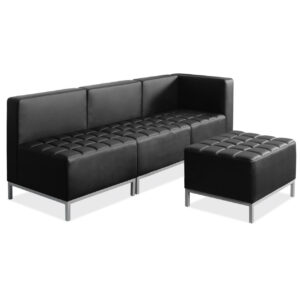 This armless chair, from the Millennial Collection by OfficeSource, offers a contemporary feel with unmatched comfort. Featuring a black faux leather upholstery combined with a silver accent base, this is the best piece of office furniture you could have in your reception area if you want to present a sleek look to both visitors and employees alike. Not only does it have tufted cushion seating for extra comfort, but it is also fully Greenguard certified. This means that you can be sure it meets current industry standards on chemical emissions, keeping your workforce and workplace safe.