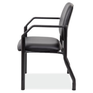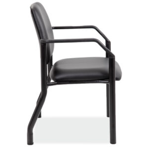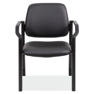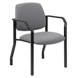 This Big & Tall guest chair comes with contoured arm rests and is rated at 300 lbs. It is covered in a gray antimicrobial vinyl with a waterfall seat design meant to prevent leg fatigue in longer sitting periods. Constructed with a steel frame and black tubular legs featuring a wall saver design and self leveling back legs, this guest chair by OfficeSource is a great addition to any lobby or medical setting.