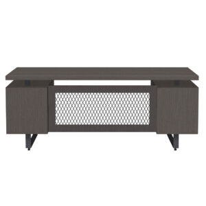 - A center drawer is included for convenient storage and a mesh metal modesty panel completes the look