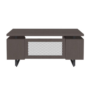 - A center drawer is included for convenient storage and a mesh metal modesty panel completes the look