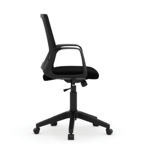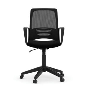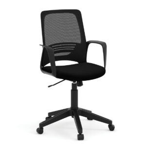 The Mesh Back Task Chair has black base and black frame. It also features pneumatic seat height, 360-degree swivel, and tilt tension. The chair comes in a variety of seat colors.
