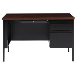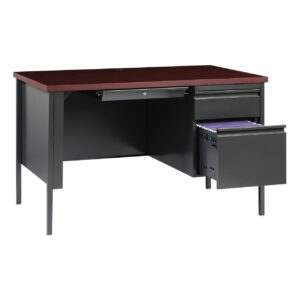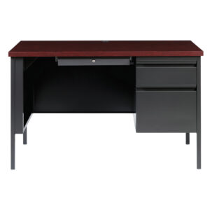 A durable solution for long-term heavy use, our metal desk is a professional desk solution for business, government, and school administrative offices and classrooms. The durable laminate worksurface is easy to clean and disinfect.