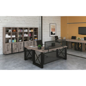 Modern design meets rustic style in the Riveted Collection Industrial Style Desk. The distressed wood laminate top creates a reclaimed aesthetic. Six cubbies for extra storage space in the office.