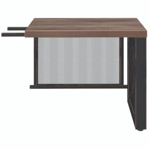 Modern design meets rustic style in the Riveted Collection Industrial Return and gives one added surface space. The distressed wood laminate top creates a reclaimed aesthetic. With a thick top and heavy industrial metal cross bar base, there is added structure and stability.