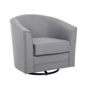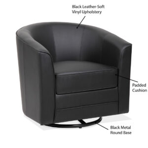This swivel, club chair is both sleek and comfortable. Coming in two different upholstery options, including black leather soft vinyl or gray linen fabric, this club chair is perfect for any lounge area or even your living room. With its ability to swivel 360 degrees, you can easily work from every angle of your desk or talk to the people around you, without ever having to stand up!
