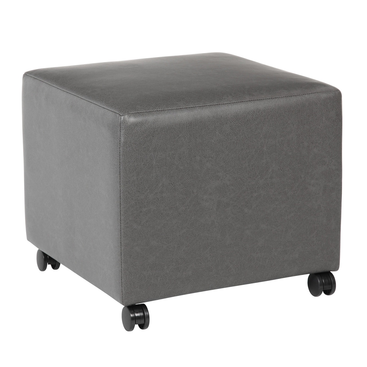 Description Mobile cube shaped ottomans offer comfortable, casual seating for quick meetings and collaboration Pleasingly neutral, easy-to-clean, Gray PU leather upholstery Slide ottomans under the Sofia Low Mobile Collaboration Table when not in use 4 smooth-rolling casters allow for easy repositioning and storage.