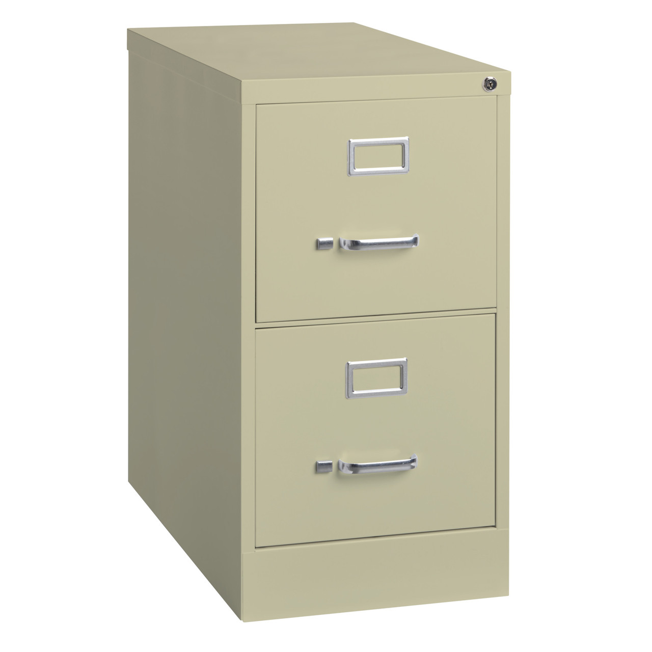 25-inch deep two-drawer, legal width, commercial grade vertical file cabinets are perfect for business, educational, or personal offices. These cabinets feature a classic design and are constructed with high quality durable materials that are suitable for heavy-duty use. Ships fully assembled and is ready to accept legal width hanging file folders. Non-porous surface is easy to clean and disinfect. Each drawer includes full extension ball-bearing slides for smooth drawer action. Even fully loaded, these drawers open with ease. Adjustable follower blocks keep files upright. The aluminum handles and label holder are durable and functional making it easy to access and label drawer contents. The included core-removable lock allows cabinets to be keyed alike. Designed to meet or exceed ANSI/BIFMA industry standards for performance and workmanship. Made with 28% total recycled content. Backed by a Limited Lifetime Warranty. TAA Compliant. Greenguard Gold certified for indoor air quality.