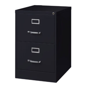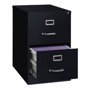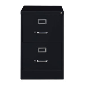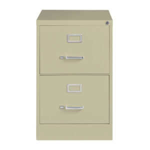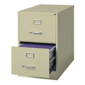 26.5-inch deep two-drawer, legal width, commercial grade vertical file cabinets are perfect for business, educational, or personal offices. These cabinets feature a classic design and are constructed with high quality durable materials that are suitable for heavy-duty use. Ships fully assembled and is ready to accept legal width hanging file folders. Non-porous surface is easy to clean and disinfect. Each drawer includes full extension ball-bearing slides for smooth drawer action. Even fully loaded, these drawers open with ease. Adjustable follower blocks keep files upright. The aluminum handles and label holder are durable and functional making it easy to access and label drawer contents. The included core-removable lock allows cabinets to be keyed alike. Designed to meet or exceed ANSI/BIFMA industry standards for performance and workmanship. Made with 28% total recycled content. Backed by a Limited Lifetime Warranty. TAA Compliant. Greenguard Gold certified for indoor air quality.