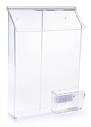 Improve your marketing game with this multipurpose outdoor literature dispenser. Display your single-sheet flyers, magazines, catalogs, and more in this acrylic brochure holder. Providing added functionality, this is a combination literature dispenser with business card pocket. Designed for interior and exterior use, this brochure holder features an overlapping, hinged lid that protects your flyers from the elements. Each literature dispenser is constructed with two pre-drilled holes for easy wall mounting. Attach the accompanying small front compartment to the acrylic brochure holder before interior or exterior installation. Wall mounting hardware is not included.