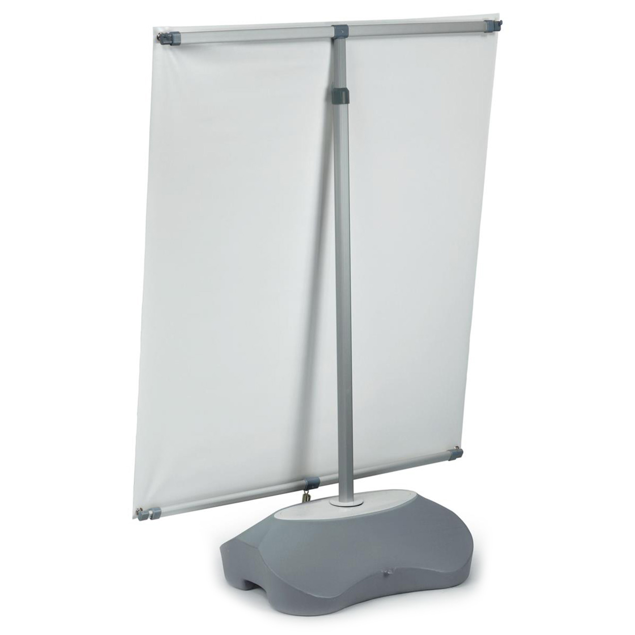 This adjustable banner display is the medium-sized display banner from this product line. For smaller display areas or exhibitions, this outdoor/indoor exhibit is the ideal choice. This banner stand and sign works well in both indoor and outdoor environments. The unit holds a 25″ to 39″ wide & 43″ to 82″ long vinyl banner. The unit also features a weighted water-filled base. This banner stand and sign that advertises outdoors has a base that contains 6 gallons of water when filled. The weighted base assures that the model will remain stationary. This banner stand and sign includes a custom printed vinyl banner. Say nearly anything you’d like in full color and with graphic images. The banner stand and sign can help draw attention to all sorts of goods or services! Position one at a promotional event in a park or set it up inside a convention hall for a business conference. Buy this banner stand and sign to increase your business exposure!