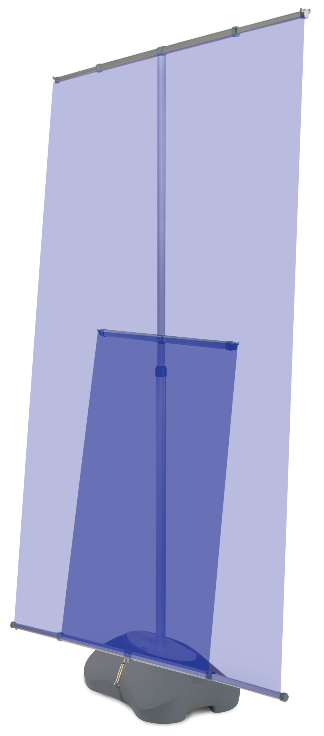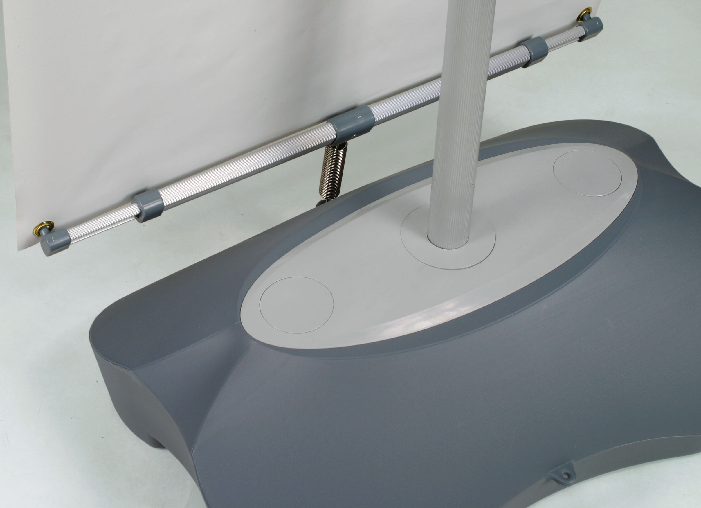 With its few parts, the banner stand and sign is simple to piece together and easy to transport from venue to venue. This model is for use in both indoor and outdoor environments. A high-elastic spring connects the bottom horizontal bar to the water-filled base. For the outdoors, this spring is especially useful because it lessens the impact of the wind on your display banner. Keep in mind that, as with all banner stands, these banner stands are not indestructible and may run the risk of being blown over in winds. Please use your own discretion. This banner stand and sign also makes small spaces efficient by taking up less than 2 square feet! This unit also takes up little storage space when not in use. For unique advertising signage, buy this banner stand and sign!