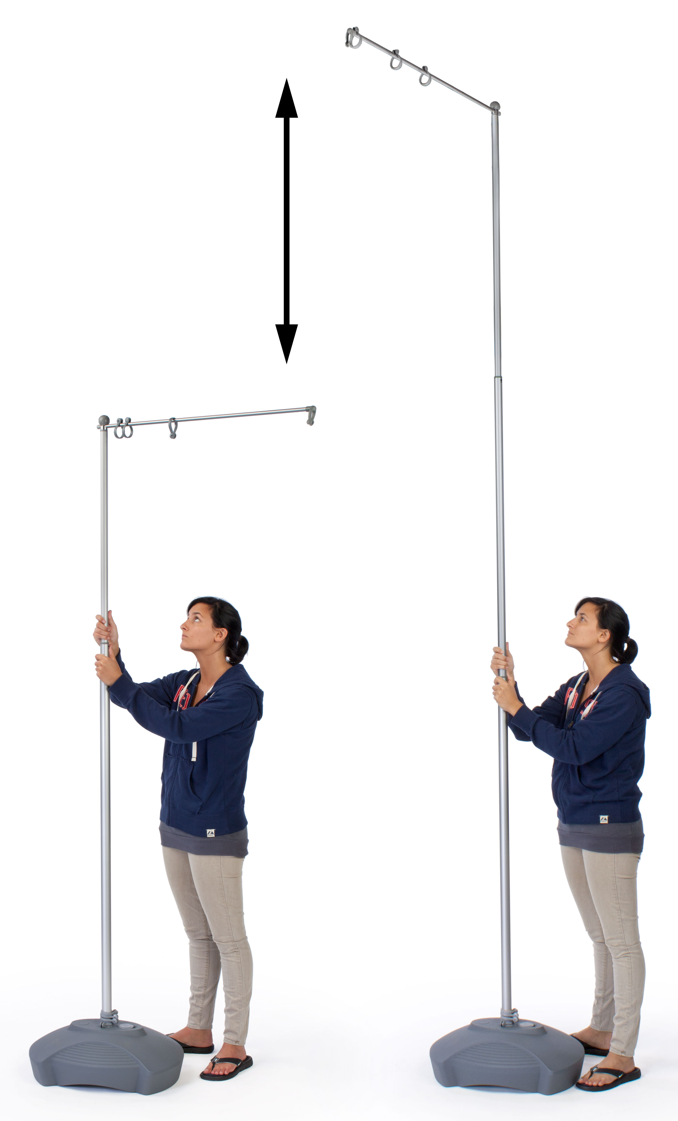 - Telescoping pole with grommet clasps to hold 10′ flag