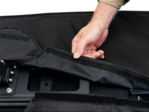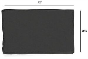 This 42″ weather-resistant outdoor TV cover is ideal for protecting monitors in low to moderate humidity, rain, snow, dust, and sand. The rear opening accommodates mounting brackets with different styles. Each protective closure is made of a lightweight, waterproof Oxford material with a 400d x 300d thread count. This outdoor TV cover features hook and loop fasteners for an easy install or quick removal. For 360-degree protection, each 42″ weather-resistant monitor wrap features two double-stitched zippers located on the back. The outdoor TV cover has a built-in storage compartment placed on the rear to tuck away the remote or other accessories all in one place.