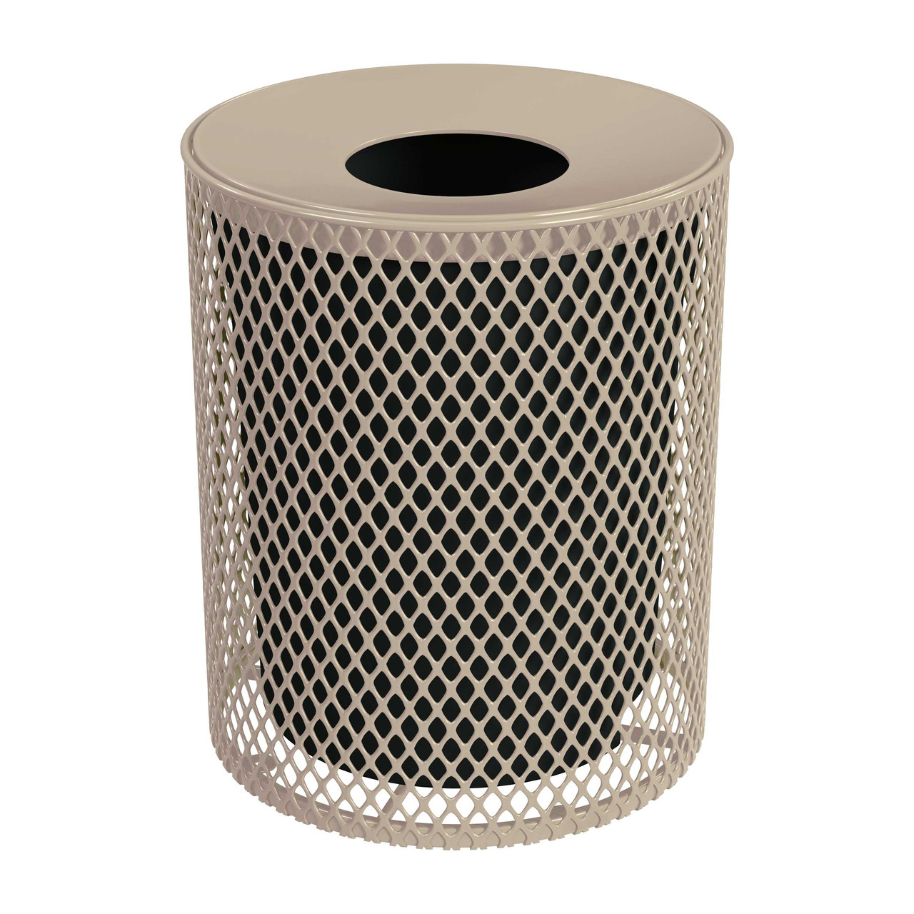 32-Gallon Expanded Receptacle is made from welded steel. It is available in a variety of bright colors. They are fade and water resistant. A customized logo or words can be cut into the steel of the receptacle.