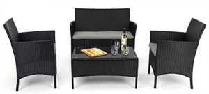 Outdoor Sofa and Chair Set w/ Tempered Glass Coffee Table and Synthetic Rattan Material