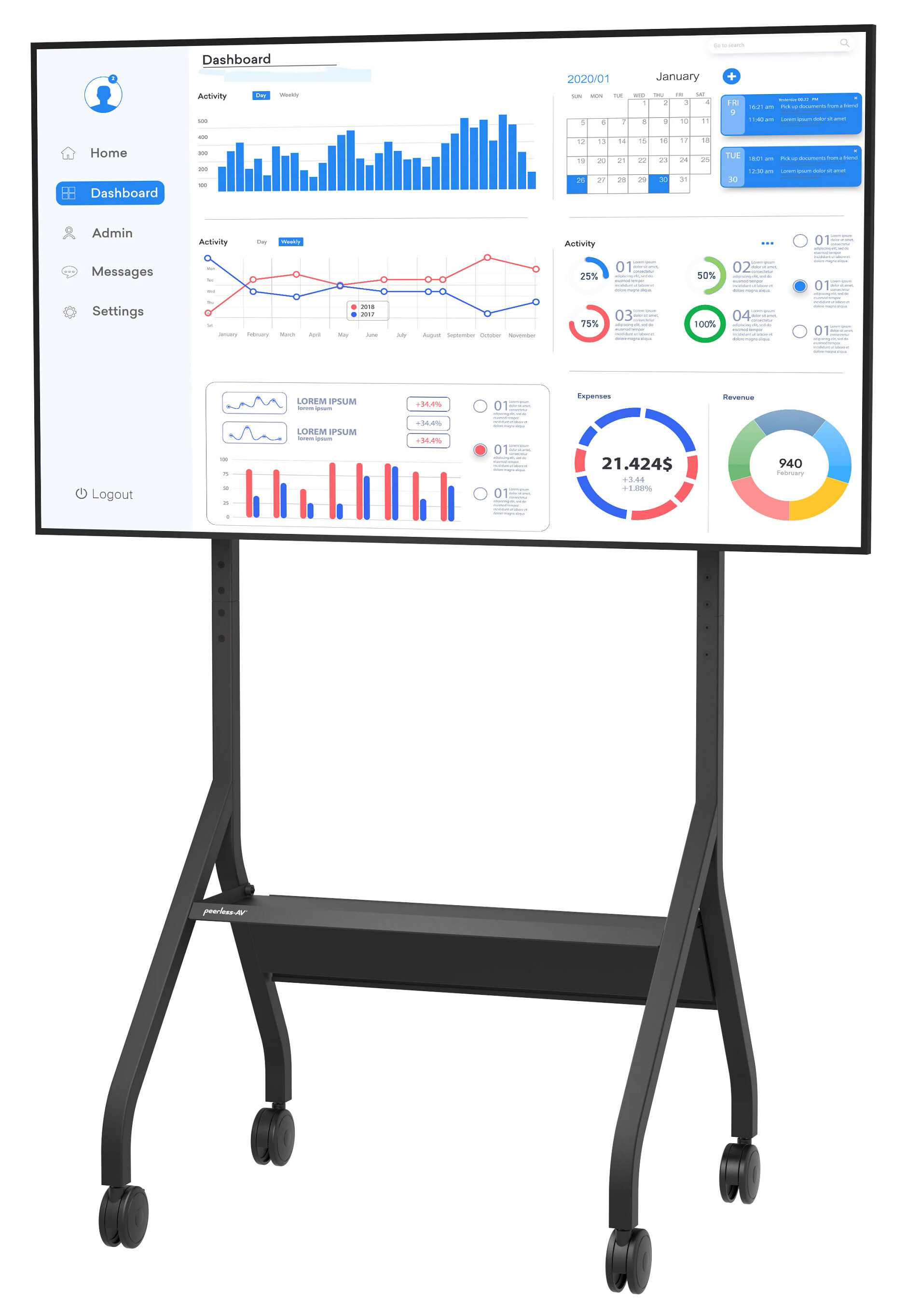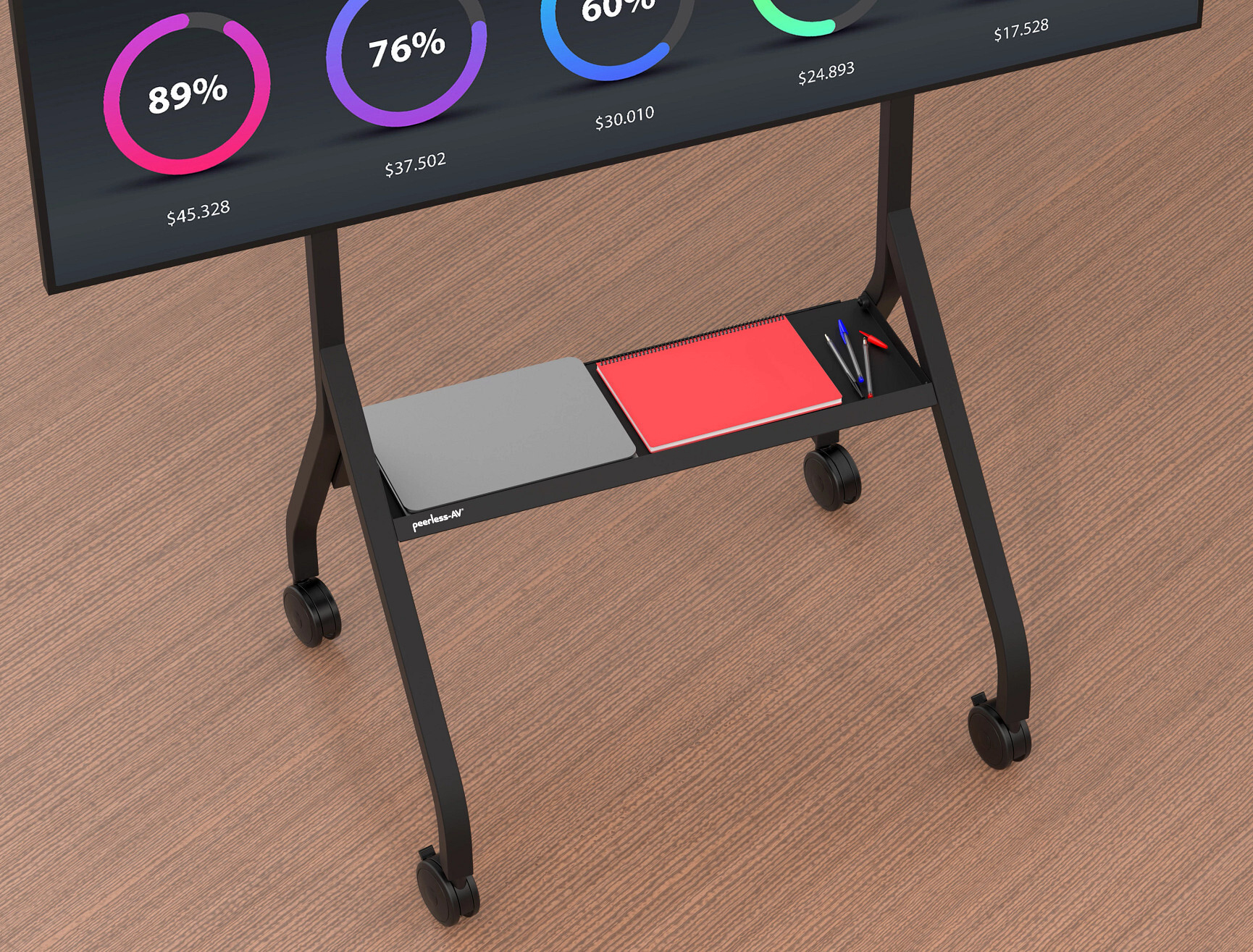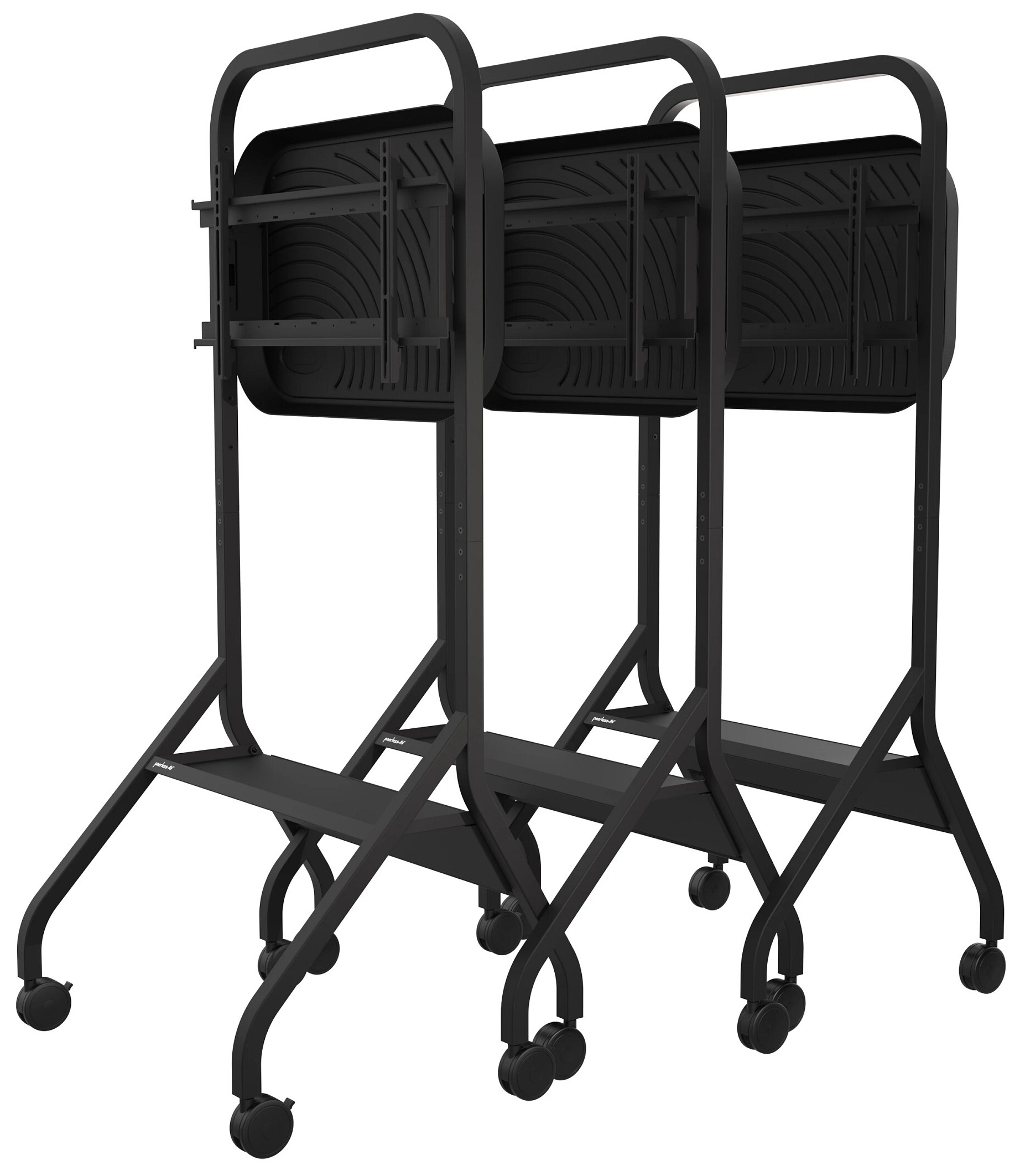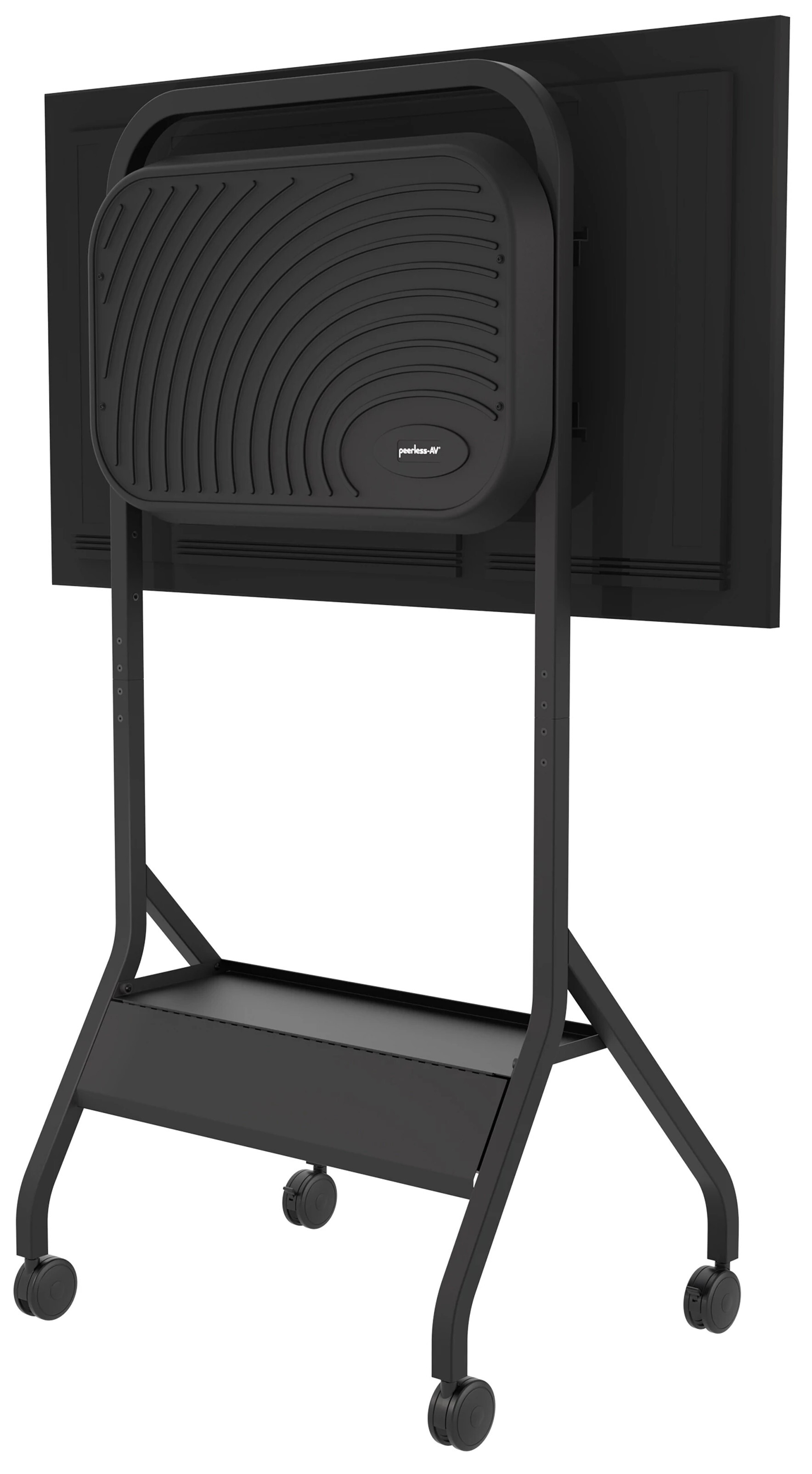 Looking for a powerful, professional way to mobilize your 43″-75″ display without sacrificing style or stability? The Peerless® mobile tv cart transforms any space into a dynamic presentation environment with a sleek, rolling floor stand designed for effortless movement and maximum impact. Perfect for corporate offices, conference centers, and university classrooms, this cart glides smoothly on 4″ dual-wheel casters, making it easy to transport your large screen from room to room. Its clean, tubular frame keeps cables neatly concealed, ensuring your display—not messy wires—captures everyone’s attention. Engineered for versatility and performance, this SmartMount® floor stand offers adjustable height positioning to deliver optimal screen visibility for audiences of all sizes. A sturdy equipment shelf provides convenient storage for laptops or media devices, while the integrated power cord management keeps your setup organized and presentation-ready. Whether you’re leading a lecture, hosting a training session, or delivering a high-stakes pitch, this rolling mobile tv cart provides the flexibility, durability, and polished appearance needed to make every 43″-75″ display shine.