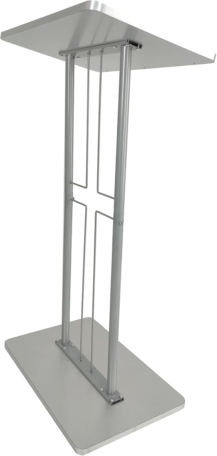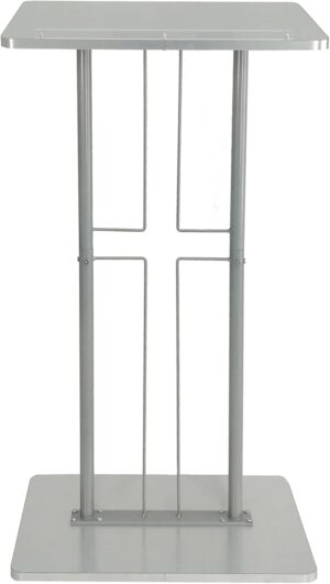 - Podium for Floor, Cross Design, Steel & MDF – Silver. Choose a more stylish and modern place to keep your Bible with this cross pulpit. Made with a sturdy but lightweight material, this stand offers the simplicity and sleek design that other pieces of church furniture and lecterns may lack. This silver pulpit features a lip on its surface to hold literature, your Bible or any other item you want on hand during your sermon.