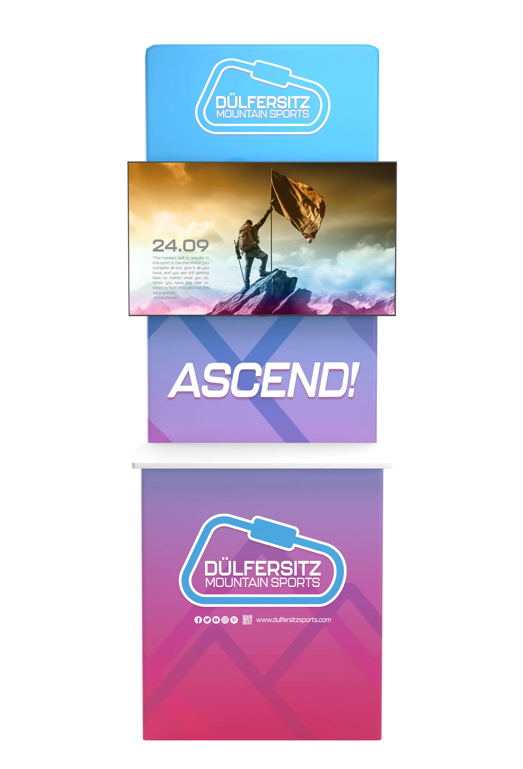 Pop up Backwall with Single-Sided Graphics, Counter and Monitor Mount