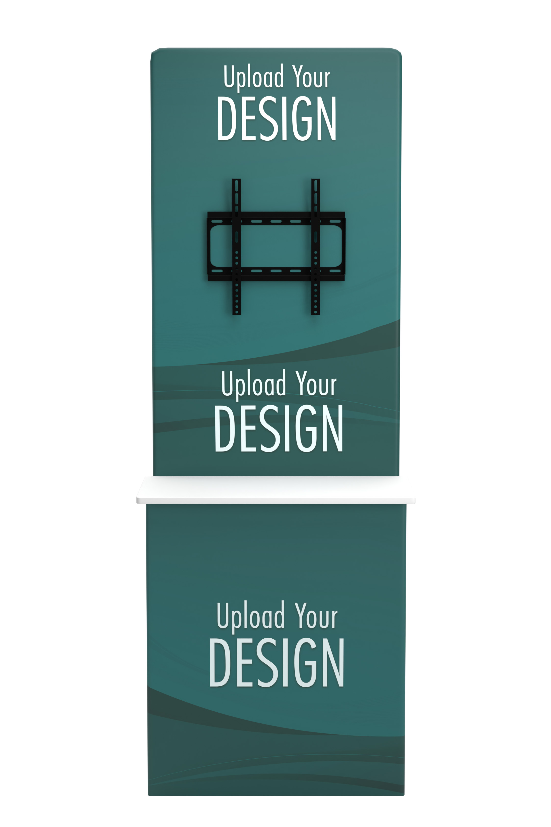 Introduce your brand confidently at your next tradeshow event with this custom-printed pop-up backwall display. This pop-up backdrop is designed for style and practicality with custom-printed graphics that provide a canvas for your brand’s unique identity! The integrated monitor mount adds an interactive dimension, supporting up to 43″ screens, enabling dynamic content or product demonstrations that captivate your audience. Experience a stress-free setup with our toolless assembly for a quick and easy setup. This display comes with a convenient black carry bag for effortless transport. A dedicated counter featuring a laminated MDF top for a polished presentation surface enhances the aesthetic of your booth while providing a surface for meeting with visitors or showcasing your products. Our pop-up backwall display is an excellent solution for any exhibitor looking for a visually striking, easy-to-assemble, and portable solution that ensures their brand stands out at every trade show event!