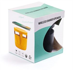 This personalized charging speaker with Bluetooth sound mode makes a unique and innovative corporate gifting idea. Charge any Qi capable device by laying it directly on top of the portable charger while it plays clear audio at the same time. Brand your wireless charging speaker with full-color custom logo printing and display your company brand directly on the top of the unit. The portable device features up to 30 feet of Bluetooth range and is powered by 3 watts of crisp audio. Included with every unit is a non-branded gift box, a type-C cable for charging, and a clear user manual for easy user experience. Our wireless charging speaker with custom logo is powered by a 300 mAh wireless charging battery for continuous device powering.
