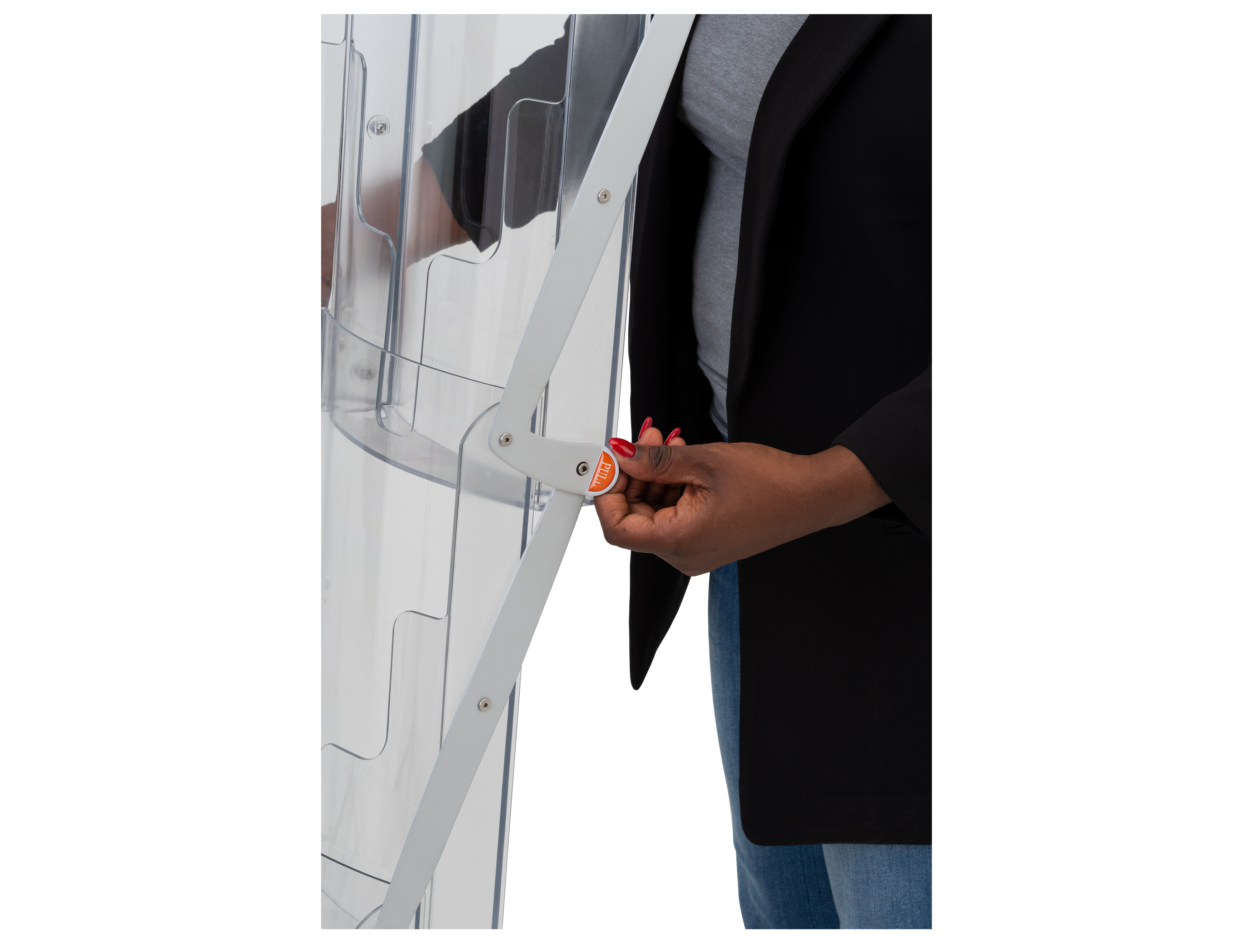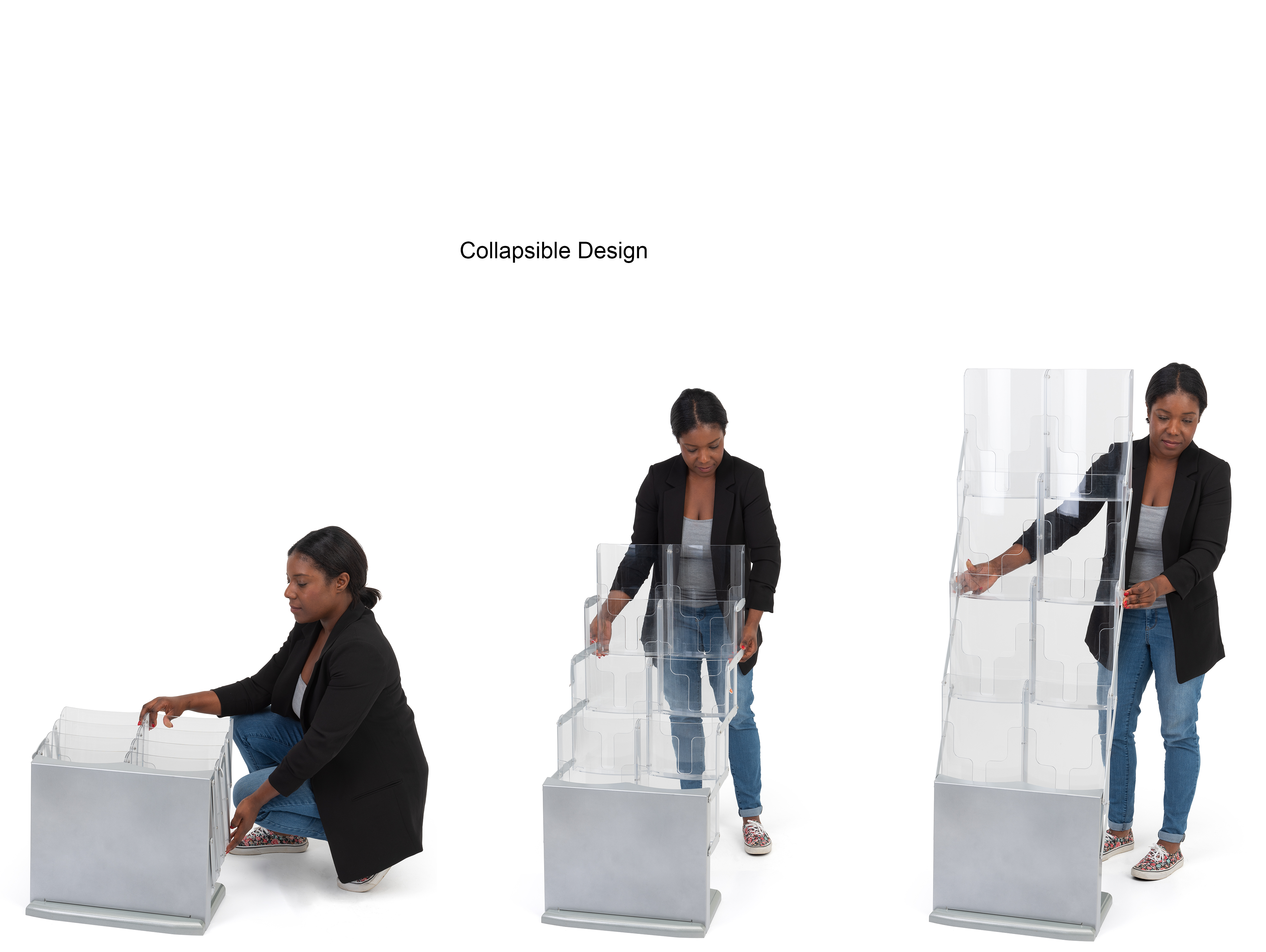 Take your catalogs on the go with this portable literature stand with a travel bag included — ideal for trade shows, conferences, and other business display options. With a combination of contemporary style, durability, and portability, this pop-up magazine display is an excellent option for presenting media. A total of (8) pockets provide this portable literature stand with significant capacity and a wider selection of takeaway magazines. The collapsible rack features pockets are the perfect size for traditional 8.5″ x 11″ material. Pockets on this brochure display are clear, providing a full view of the marketing content displayed within. Once fully expanded, lock the portable literature stand into the upright position; no assembly is required. Unlike many other pop up racks, this flyer display allows you to leave marketing content inside the pockets when the unit is collapsed.