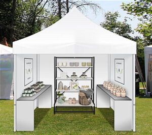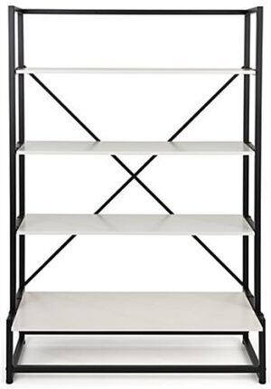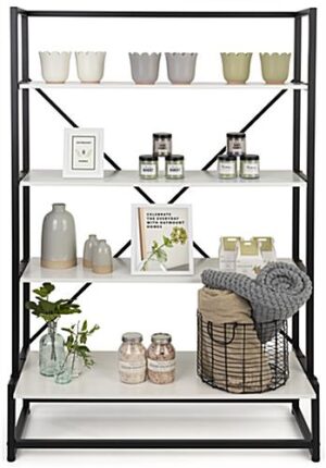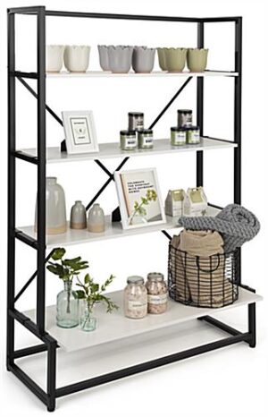 Portable Shelving Display with 4 Tiers, Floor Standing, Paulownia Wood – White