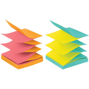Post-it Dispenser Notes, 3 in. x 3 in., are accordion-style notes specially designed to work in Post-it Note Dispensers. With these notes, you’ll always have a note nearby to capture great ideas. Unique adhesive is designed to work on paper or in planners. Use for notes or reminders to yourself or others. Pads are in two alternating colors from the Poptimistic Collection – 6 pads alternate between Power Pink and Vital Orange, while the other 6 pads alternate with Acid Lime and Aqua Splash. Post-it Dispenser Notes are recyclable and the paper in Post-it Notes is sourced from certified, renewable and responsibly managed forests.