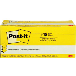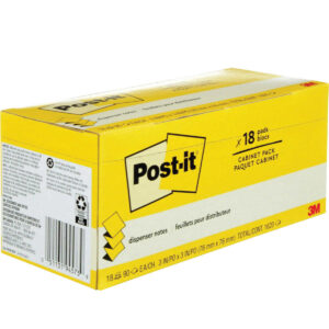 Post-it Dispenser Notes, 3 in. x 3 in., are accordion-style notes specially designed to work in Post-it Note Dispensers. With these notes, you’ll always have a note nearby to capture great ideas. Unique adhesive is designed to work on paper or in planners. Use for notes or reminders to yourself or others. Cabinet pack is great to stock up your office, school or work area. Classic Canary Yellow color helps your notes stand out. Post-it Dispenser Notes are recyclable and the paper in Post-it Notes is sourced from certified, renewable and responsibly managed forests.