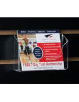The retail fixture, postcard display is fabricated from clear acrylic and is very durable. With a smooth surface, the postcard rack is easily wiped clean, so your slotwall display stays looking professional. This lightweight postcard rack can hold stacks of standard size 6″w x 4″h cards. The postcard rack is commonly seen in gift shops, retail establishment and other businesses with slotwall displays.