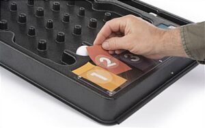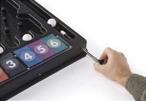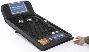 Spice up your next expo event with this trade show pinball game which features customizable templates. Durable ABS plastic offers a lightweight tabletop design that’s easy to transport while still sturdy enough for frequent use. Each black pinball game offers hours of amusement and play for potential customers and clients at expo events. Design and print out your own prize cards by downloading the templates found below and editing them on any computer. To play the pinball game simply load a ball into the channel and pull back the lever. Create amusement and intrigue at your booth, retail outlet, or expo event with this fun fixture!