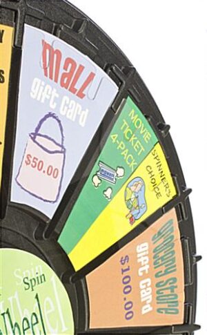 These raffle wheels are great promotional tools for rewarding participants during a trade show, merchandise sale, fundraiser or office gathering. The spinning carnival displays feature 12 blank sections, giving users freedom to create personalized incentives and awards. These game wheels are also equipped with double the amount of notches, so users can easily switch a 12-slot display to 24 section gaming system! These gaming accessories include a customizable, sign holder in the center. Game wheels, also known as prize wheels, utilize a plastic clicker to create a well-defined clicking sound, building anticipation within players. The unique noise will also draw in more visitors to a tradeshow booth or store!