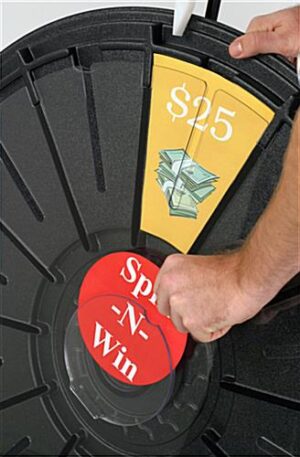 This prize wheel spins with ease so it can be used by nearly anyone of any age. We sell these Wheels of Fortune for use at parties, tradeshows, or company meetings. This game wheel, prize wheel can add an element of fun to any gathering.