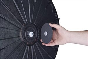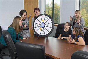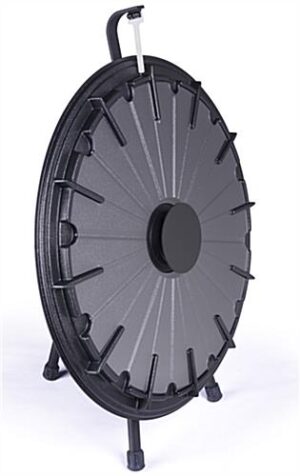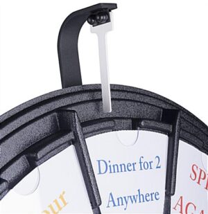 The 26” spin and win game is the perfect motivational tool to play at a corporate meeting or tradeshow. Boost employee morale with the replica wheel of fortune. Have guests at an exhibit play the counter top spin and win game to generate interest in your products or services. The clicker attracts attention with the casino like sound. Each spin and win wheel of fortune game has 12 slots for printouts. The prize options easily slide into the game board under the clear plastic panel. The back of the wheel is designed with a built in tri-pod which easily collapses for traveling between locations.