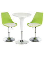 Pub Table Set with 1 Round Table, 2 Adjustable Leatherette Stools – Green & White