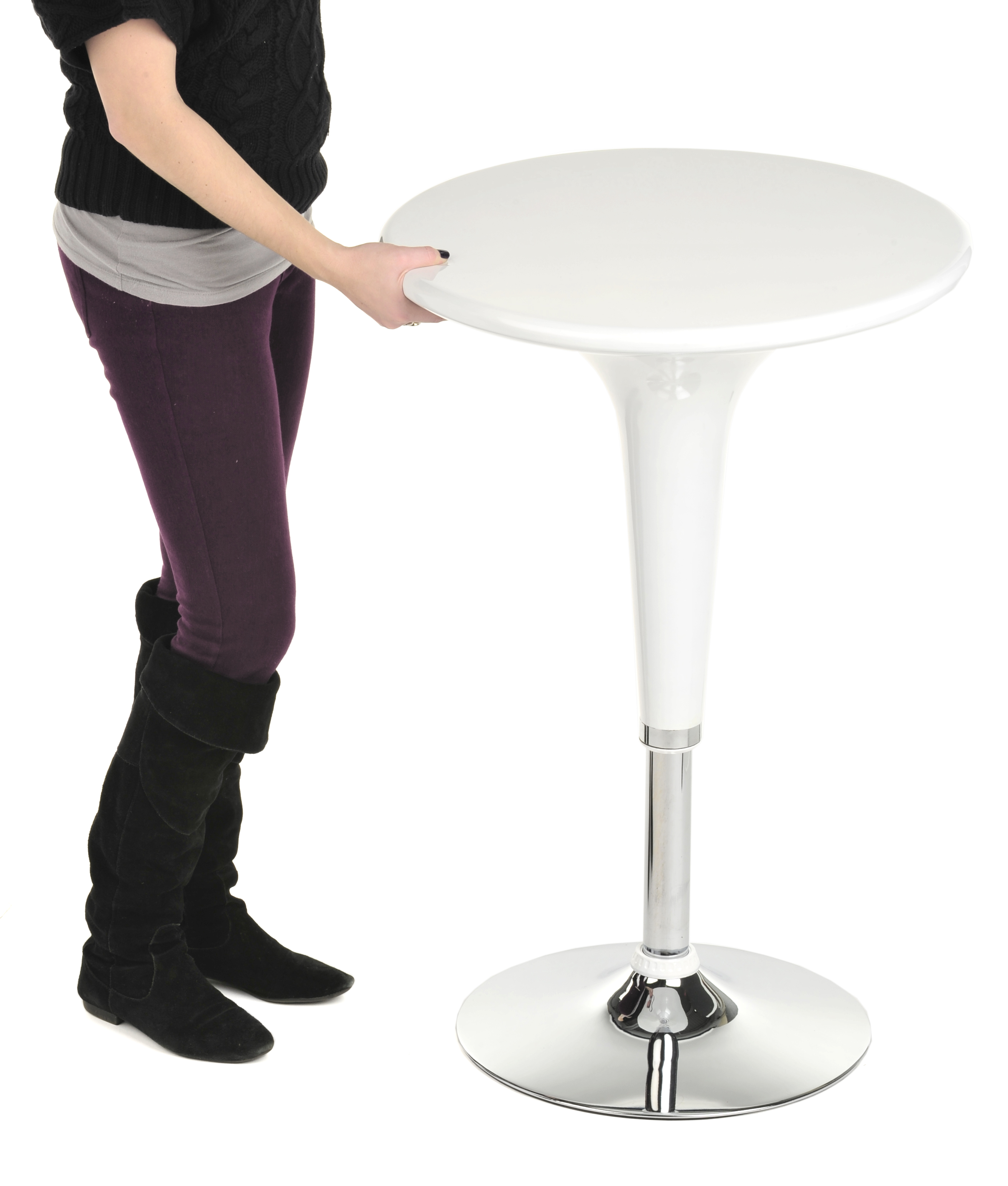 This white bar lounge chair and table is a complete dining set, including 2 high backed seats and 1 adjustable highboy. Such a contemporary and versatile collection would look amazing used as restaurant furniture, on outdoor patios, or even in trade show booths! Each piece of the high end chair and table kit has a pneumatic lift making the units height adjustable. Additionally, the restaurant furniture rotates in 360° making it great for socialization. This chair and table set features polished chrome accents and vibrantly colored imitation leather stools. Wouldn’t a furniture collection like this one be super cool to incorporate in a frozen yogurt shop or some other contemporary space?