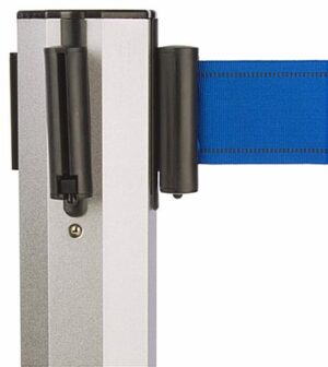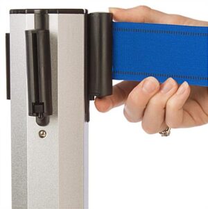 - 2″ high retractable, tightly-woven royal blue nylon belt extends anywhere between 0″ and 9′-7″