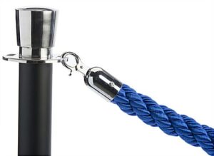 A VIP rope set is perfect for crowd control in event venues, museums, banks and more! This system includes a blue twisted nylon cable with (2) black posts. The VIP rope features chrome hooks that clip onto the stanchions. The posts’ 4-way adapters provide options for multiple configurations when used with other systems. The VIP rope set is easy to assemble and requires no tools for setup. When fully extended, the posts are 6’ apart.