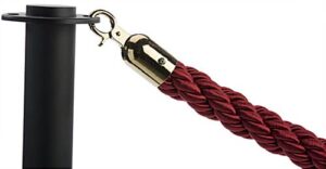 QueuePole.Deluxe Round (2) Black Stanchions w/ 6.5′ Braided Red Rope & Brass Clasps