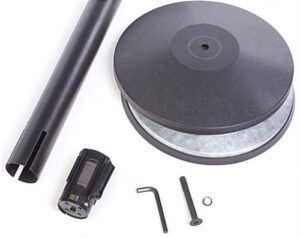 - Heavy-weight, 16 lb. rust-resistant steel base; features ABS plastic protective cover (that matches stanchion posts’ finish) to prevent scratching & marring of base (21.5 lb. total weight)
