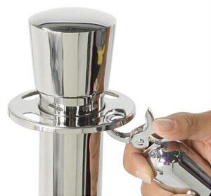 - Classic tulip-top post design features polished chrome-finish posts (mirror-finish stainless steel construction) and blue velvet hanging rope; provides an upscale means of crowd control, line queuing or display protection